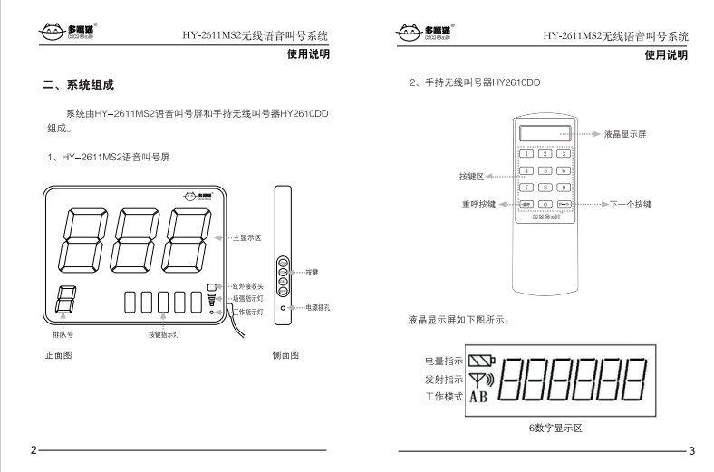 多嘴貓”HY2611T型餐飲無線呼叫服務(wù)系統(tǒng)說明書