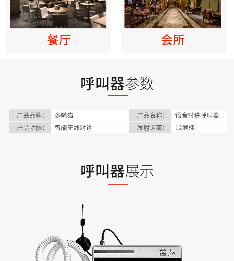 多嘴貓薄款無(wú)線呼叫器
