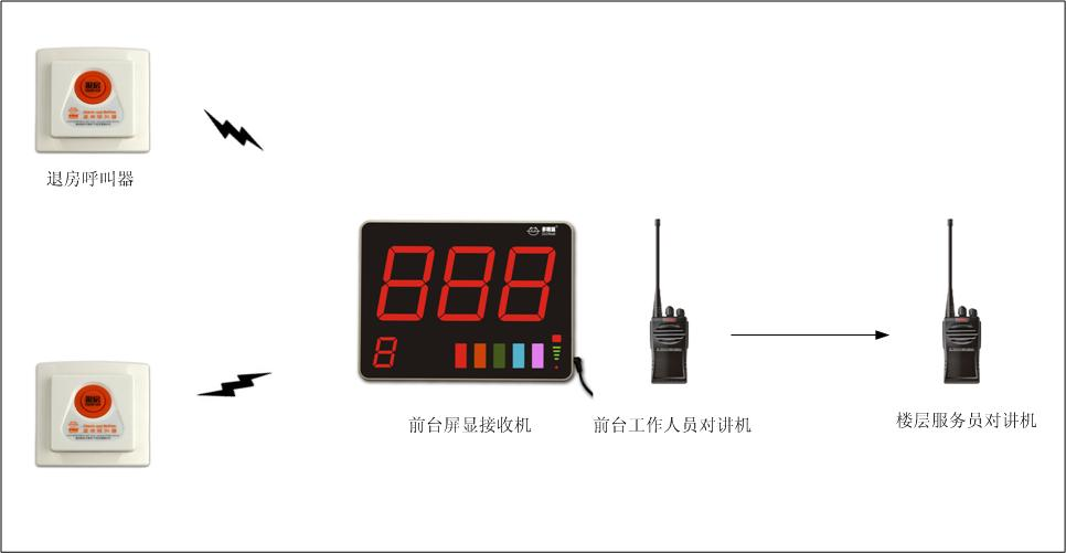 退房呼叫器采用調(diào)頻無線技術(shù)(無需布線,不破壞裝修)安裝在房卡插座旁邊,在客人離開時,按一下退房呼叫器的按鈕,樓層服務(wù)員隨身攜帶的數(shù)字信息機就可以收到信息,立即開始查房,在客人到達總臺之前,服務(wù)員就可以通過房間電話向總臺確認查房完畢,為酒店的查房操作節(jié)省大量時間,由原來的十幾分鐘降至兩三分鐘,極大地提高了星級酒店的服務(wù)質(zhì)量和形象。