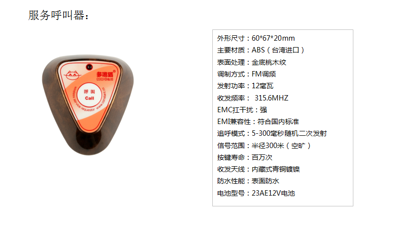 ?推薦產(chǎn)品:多嘴貓三角呼叫器、多嘴貓圓形呼叫器、CJ型控制中心、中文手表接收機